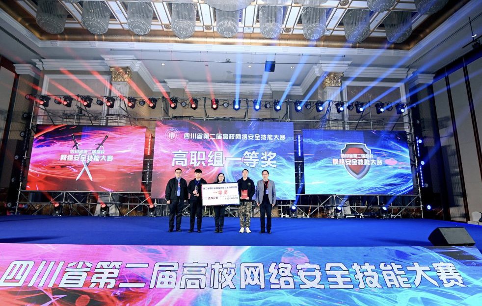 决赛采用固定计分模式,根据题目难度不同,每道题目分值不等,最终按照团队积分高低进行排名。入围决赛的69支战队经过激烈角逐比拼,最终本科组成都理工大学D1no队夺得桂冠,获得一等奖;来自西南石油大学的08067Sec队、成都大学的Cdusec4队、成都理工大学的呆诺队获得二等奖。高职(专科)组成都工业职业技术学院的CodingTeam1队获得一等奖;来自成都工业职业技术学院的TeTS1l队、泸州职业技术学院的脚本boy队、四川邮电职业技术学院无名者队获得二等奖。