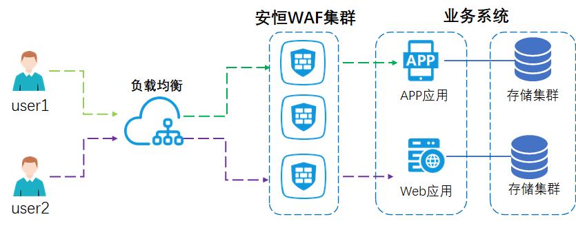 1、高性能,通过集群部署,将用户业务访问流量均衡分发至集群每一台WAF节点,减轻单台WAF压力,降低用户访问服务的延迟,提升用户体验。