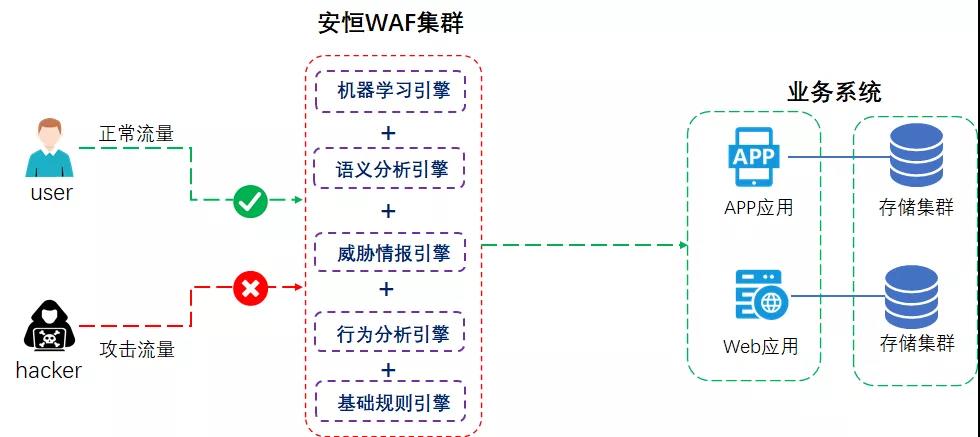为应对“健康防疫码”大流量业务应用场景,安恒新一代智能WAF采用集群部署方式从多个方面解决客户的安全问题