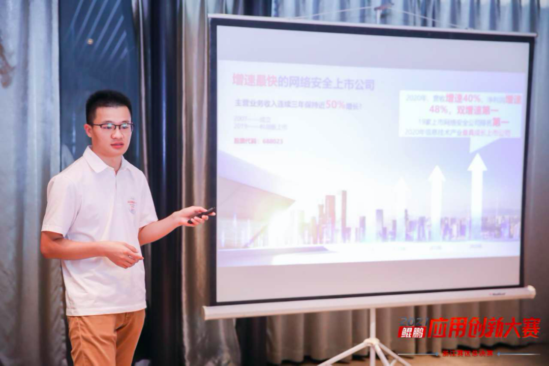 近日,鲲鹏应用创新大赛2021浙江赛区总决赛在杭圆满结束,188支参赛团队经过鲲鹏技术专家层层筛选,最终45支优秀队伍入围总决赛进行现场答辩。安恒信息童嘉伟和张凯歌带来的两款创新产品和解决方案在总决赛中脱颖而出,收获技术专家的一致好评和高度认可,分别在金融、政府赛道斩获第一名。带着备受认可的信心激励,他们将继续代表浙江赛区向全国总决赛发起冲锋,预祝他们继续高歌猛进,再创佳绩。