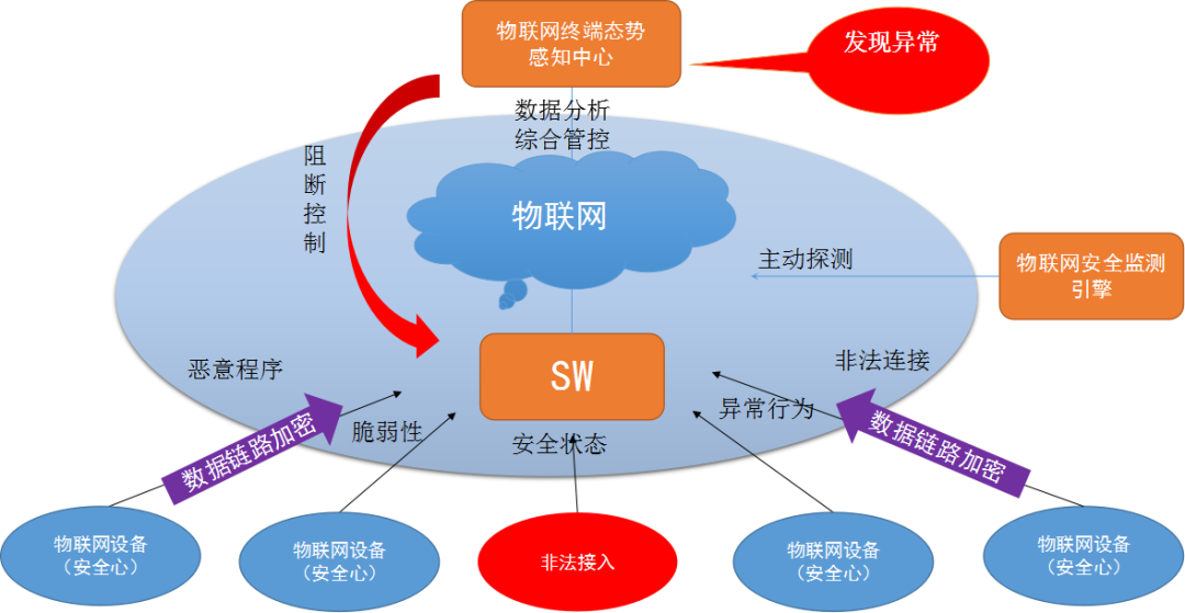 通过自适应安全防护技术,对海量物联网终端进行异常感知、传输加密和安全管控,为终端自身建立健全的安全免疫防护体系。实现物联网终端网络攻击、病毒入侵等威胁的自动防御,提高物联网终端安全等级,实现物联网智能防御与可信互联。