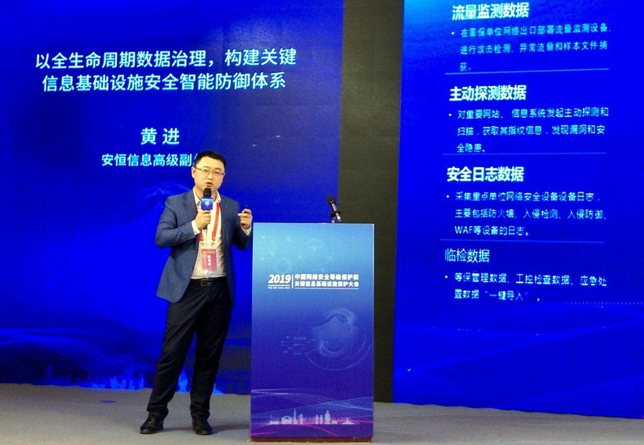 安恒信息高级副总裁黄进出席大会并发表了题为《以全生命周期数据治理,构建关键信息基础设施安全智能防御体系》的主题演讲。
