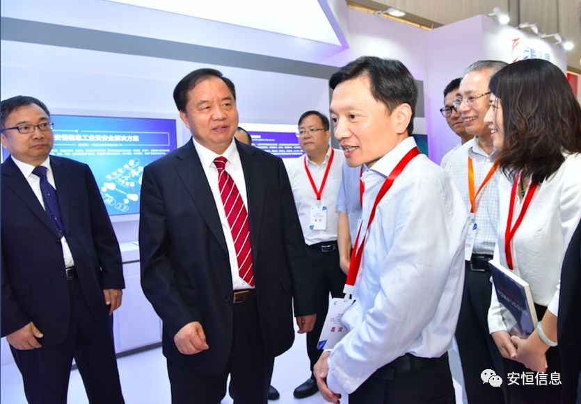 (图:工业和信息化部副部长陈肇雄等一行莅临安恒信息展台参观指导)