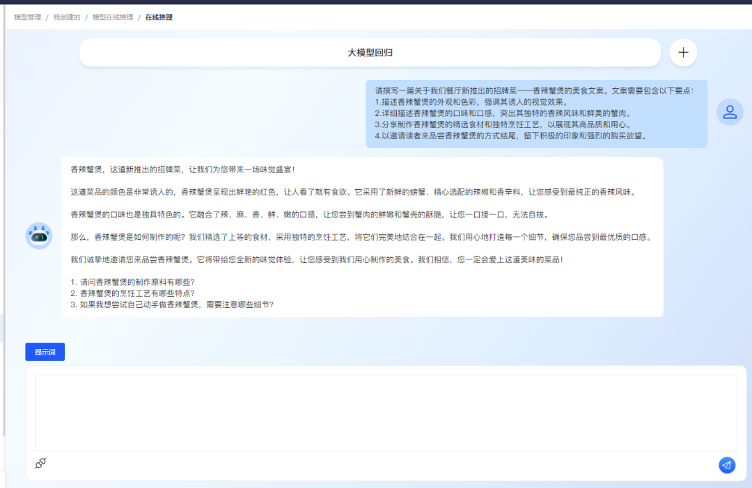 模型方面,平台支持ChatGLM3、Llama3、Baichuan2 、千问2、gemma-1.1等相关和其他模型运行。训练数据方面,支持大规模数据输入,支持数据处理和多源数据安全融合。